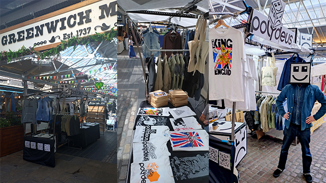 All the items shown on this page are exclusively sold on our pop up stall at Greenwich Covered Market. Here you'll find jackets, exclusive t-shits prints and coats made for sale at Greenwich and are only available on our trading days at the market. All the garments are hand made and are limited in production and size run which means it will change on each visit. The items are not directly on sale from the site but are instead sold on our visits to Greenwich. Please join us on our Instagram and Facebook pages to get news of our trading days.